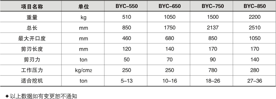 Product parameters: